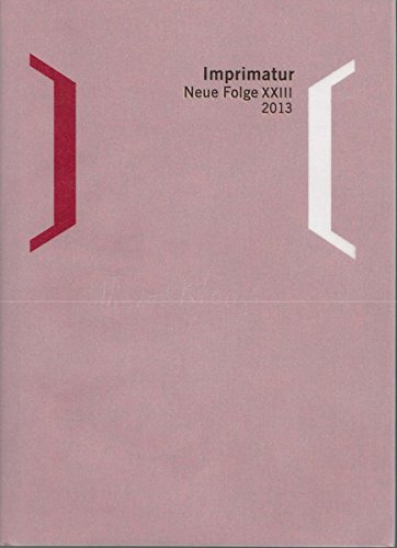 PDF Imprimatur. Ein Jahrbuch für Bücherfreunde. Neue Folge / Imprimatur 23 (2013): Ein Jahrbuch für Bücherfreunde. Im Auftrag der Gesellschaft der Bibliophilen, München Download and over one million other books are available for Kindle. .... Get your Kindle here, or download a FREE Kindle Reading App.